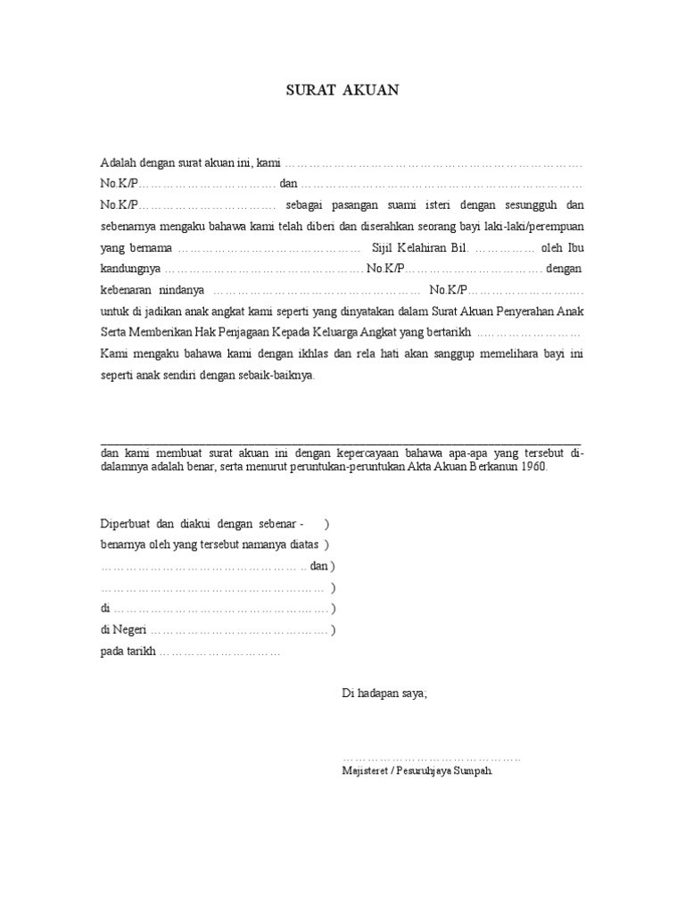 Contoh Surat Hitam Putih Anak Angkat Malaysia